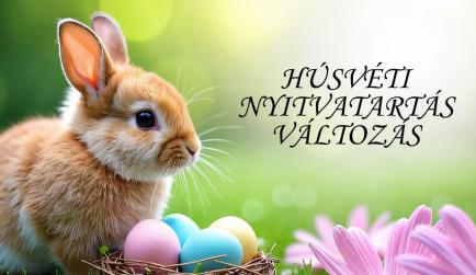 Értesítés/ Húsvéti nyitvatartás változás Húsvéti nyitvatartásunk az alábbiak szerint alakul: 2026. április 4. Nagypéntek ZÁRVA 2026. április 6. Húsvéthétfő ZÁRVA Tovább