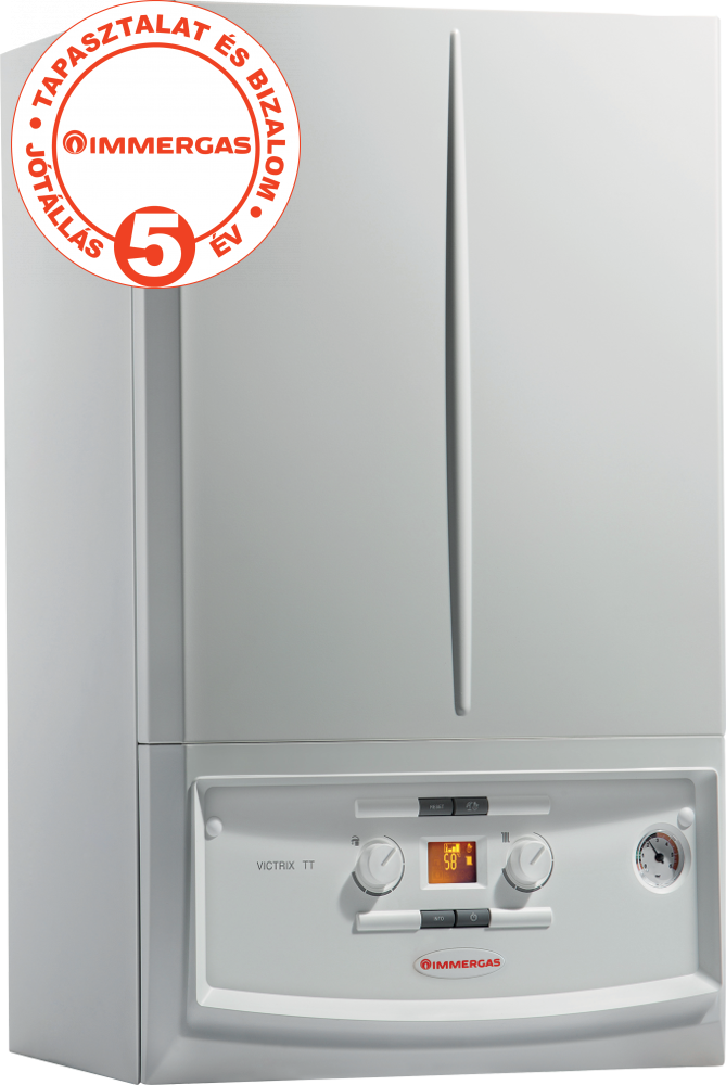 A VICTRIX TT ErP család kitűnő választás fűtéskorszerüsítéshez, vagy akár új rendszerekhez való telepítéshez. A teljes sorozatot úgy tervezték, hogy mindenben megfeleljen a legfrissebb európai direktíváknak és mindamellett növelje a kondenzációs technológia elterjedését azáltal, hogy egy könnyen elérhető magas hatásfokú fűtő és használati melegvíz készítő terméket képvisel a lakossági felhasználásban. A TT rövidítés a “Top Tech” azaz csúcskategóriának felel meg. A VICTRIX TT kazánok a cég Brescelloban található központjában egy teljesen új, automata gyártósoron készülnek, robotok közreműködésével. Valamennyi kazánt elkészülte után tesztelésnek vetnek alá, ezáltal is garantálva, hogy csak hibátlanul működő készülék kerülhessen ki a gyárból. A kazán fő egységét képző innovatív kondenzációs hőcserélő garantálja a kiváló áramlási tulajdonságokat, illetve a rendszerben keringő szennyeződésekkel szembeni magas ellenálló képességet. A készülék károsanyag emissziója alacsony, így a környezetre gyakorolt hatása is minimális. Fejlett kezelőfelülete által kezelése és beállítása egyszerű és rendkívül felhasználóbarát. LCD kijelzőjének köszönhetően az esetleges hibakódok egyértelműen beazonosíthatóak. A VICTRIX TT 24 ErP típus átfolyós üzemben képes használati melegvizet előállítani.